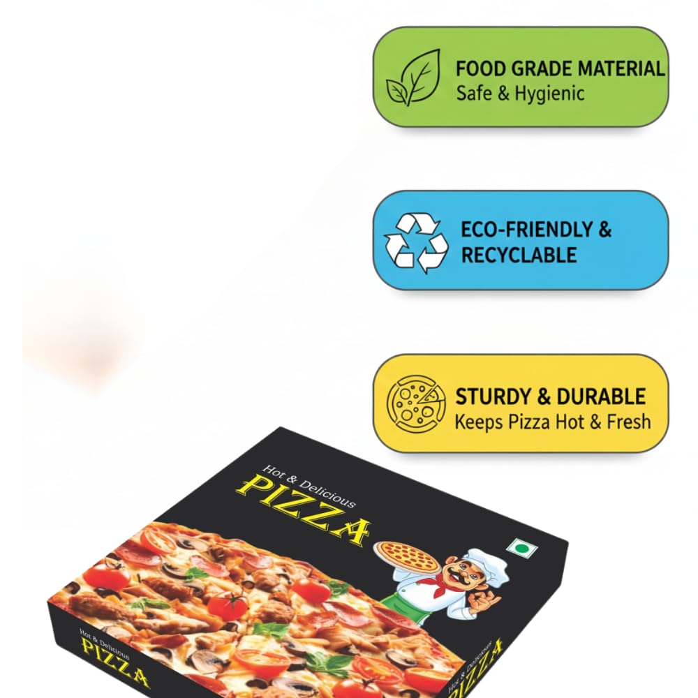 - Premium Quality Construction: Made from durable 3-ply corrugated cardboard that provides excellent strength and protection for pizzas during transport and delivery